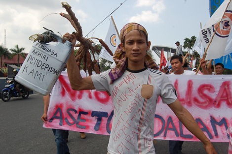 "BBM merupakan kebutuhan hampir seluruh rakyat Indonesia, mulai dari kebutuhan rumah tangga, transportasi, hingga industri. Dengan demikian, BBM merupakan hajat hidup orang banyak," ujar Dian Triska wakil sekretaris bidang Informasi Komite Wilayah Liga Mahasiswa Nasdem Provinsi Riau di sela aksi demonstrasi bersama Sentral Gerakan Rakyat Riau (SEGERA) di depan kantor Gubernur Riau.